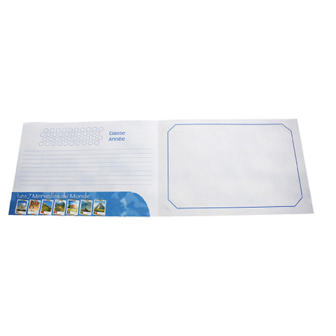Cartonnage scolaire Chemise photo 18x24/18x27/20x30 Les 7 Merveilles du Monde + rabat Collé